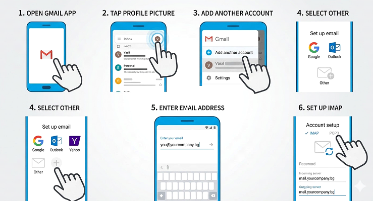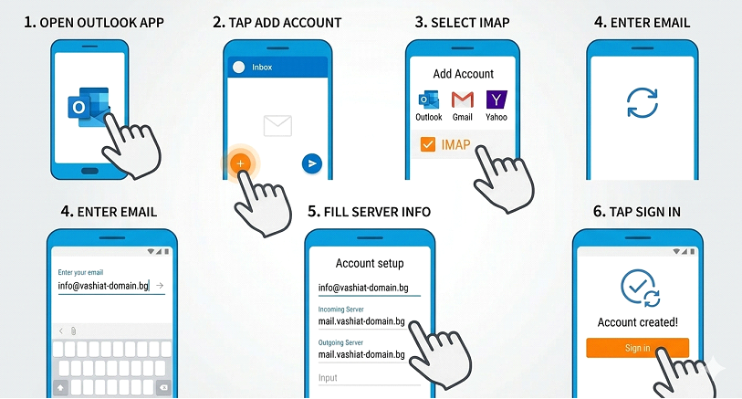 ⦁ Изберете тип на акаунта: IMAP (препоръчително за телефони).