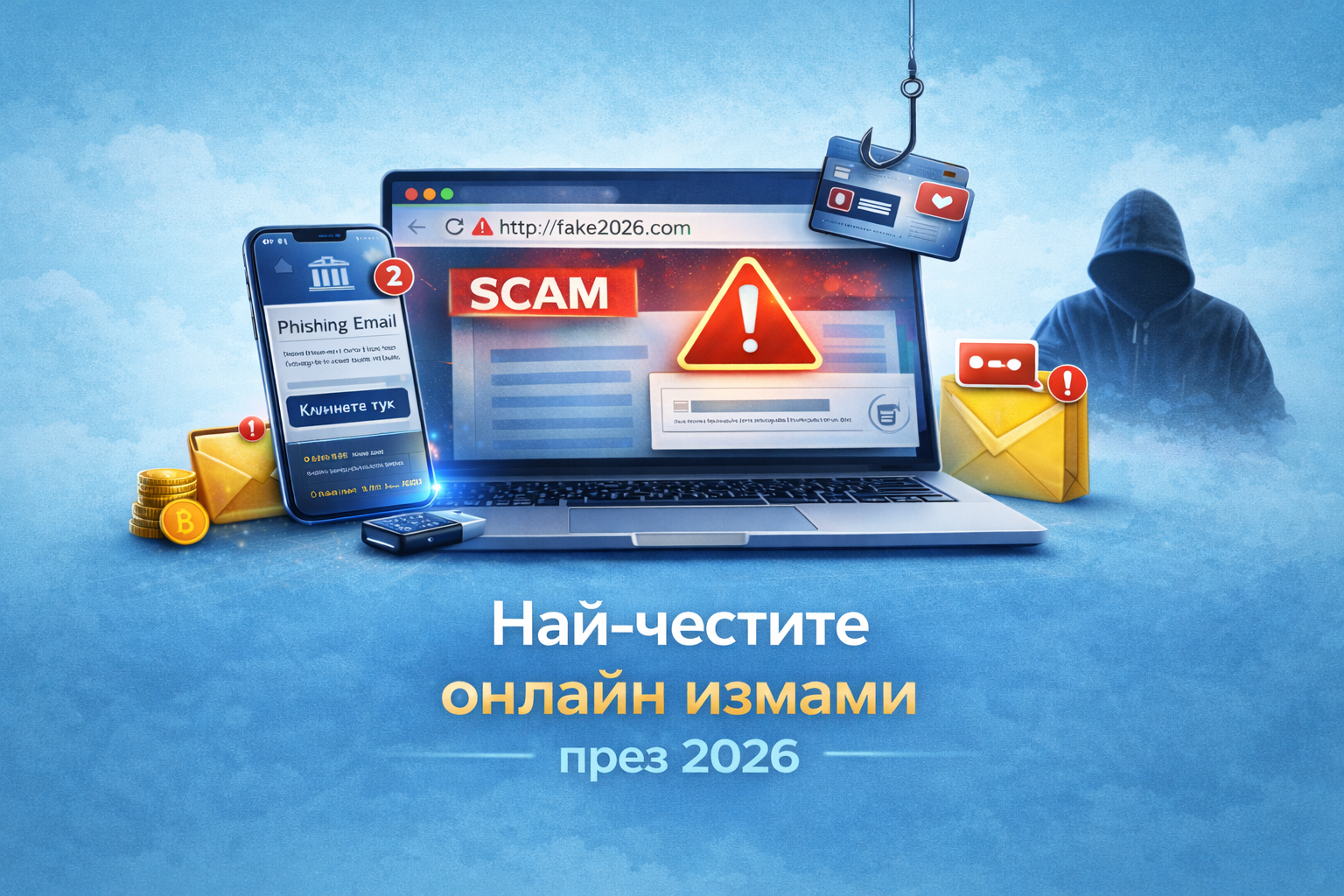 В тази статия ще разгледаме най-честите онлайн измами през 2026 година и как да се предпазим от тях.